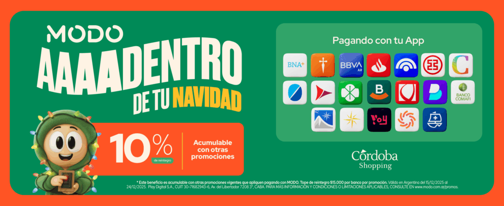 El centro comercial cuenta con servicio de internet inalámbrica. Red: #cordobashopping / Acceso: Libre